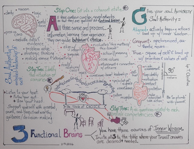 Science now tells us our heart and enteric system (gut) contain complex neural networks. Together, these three centers generate wisdom faster than Micky-D’s can toss you a burger and fries.